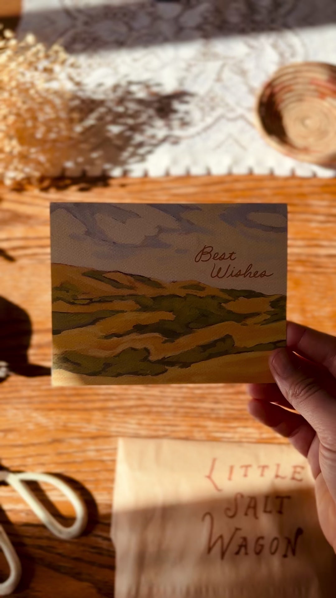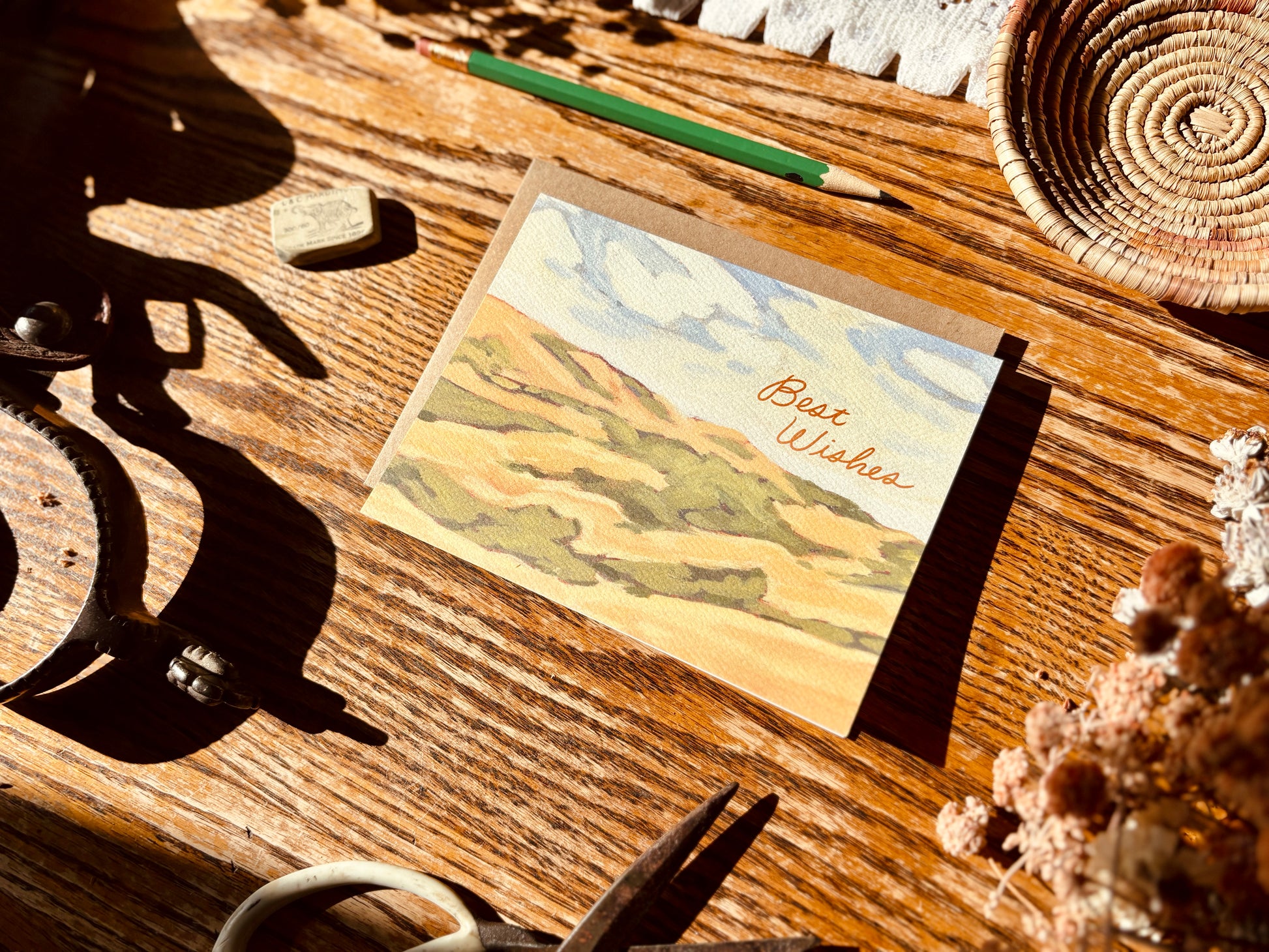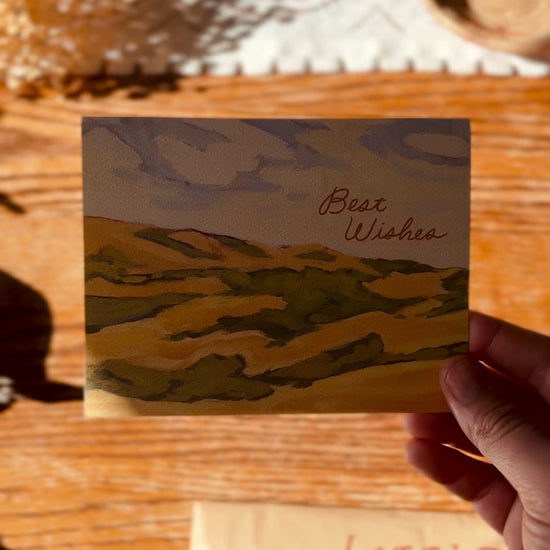 A beautiful golden natural landscape inspired by the oak and chaparral covered hills in central California- ideal for wishing congrats to a new graduate, newly married couple, recent retirement, moving to a new place or even a thank you or birthday card or just about anything or anyone.