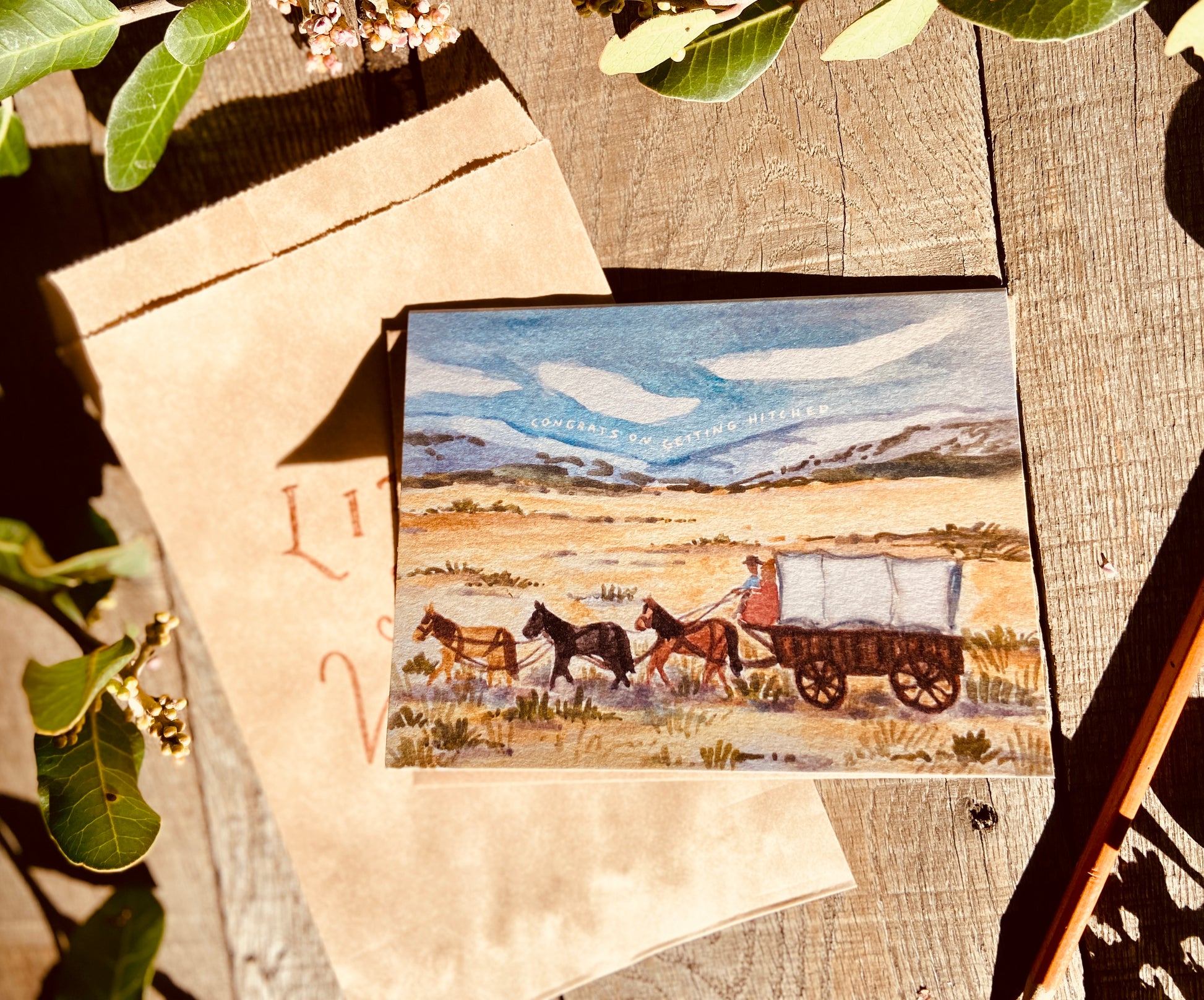 This is an updated re-do of one of my first cards I ever made! Here's a little card to say congrats for tying the knot with a little old west pioneer flair to it.