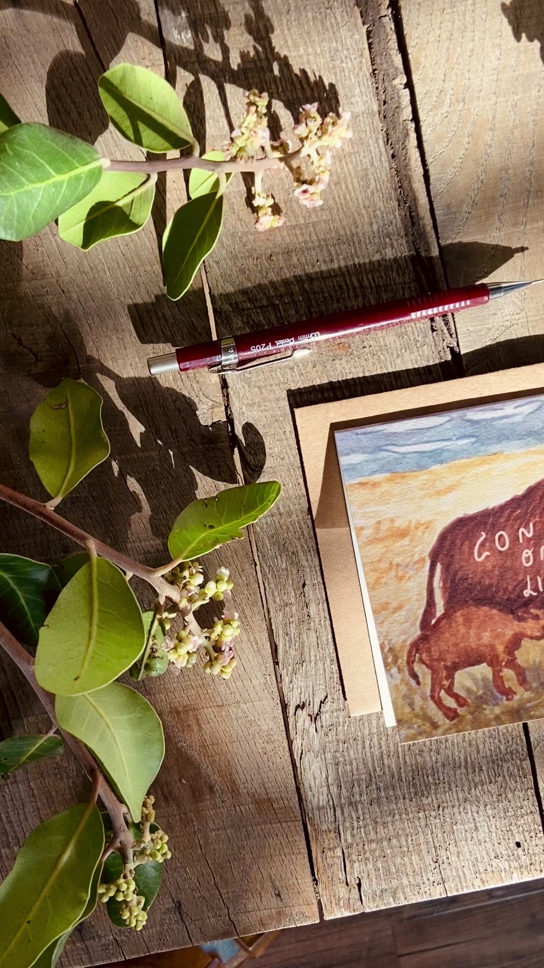 This cute baby and mama bison/buffalo card will do just the thing for an outdoorsy, animal lovin' or western soon to be mama's baby shower.