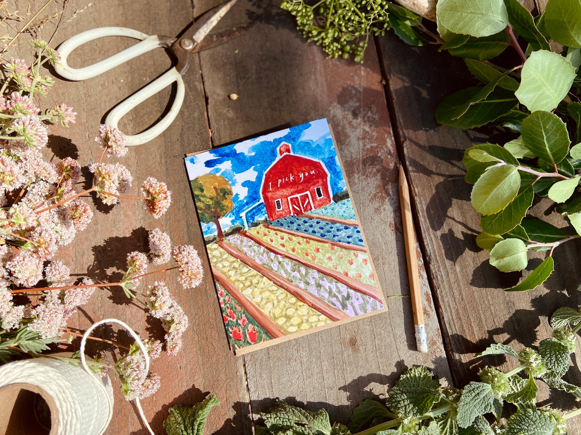 Taken from my experiences working out on farm here in the agricultural hub of the U.S., this card is well suited for the fellow gardener, flower lover, farmer or homesteader. A perfect choice for Valentine's Day, anniversary, or just to say I love you to a friend or loved one.