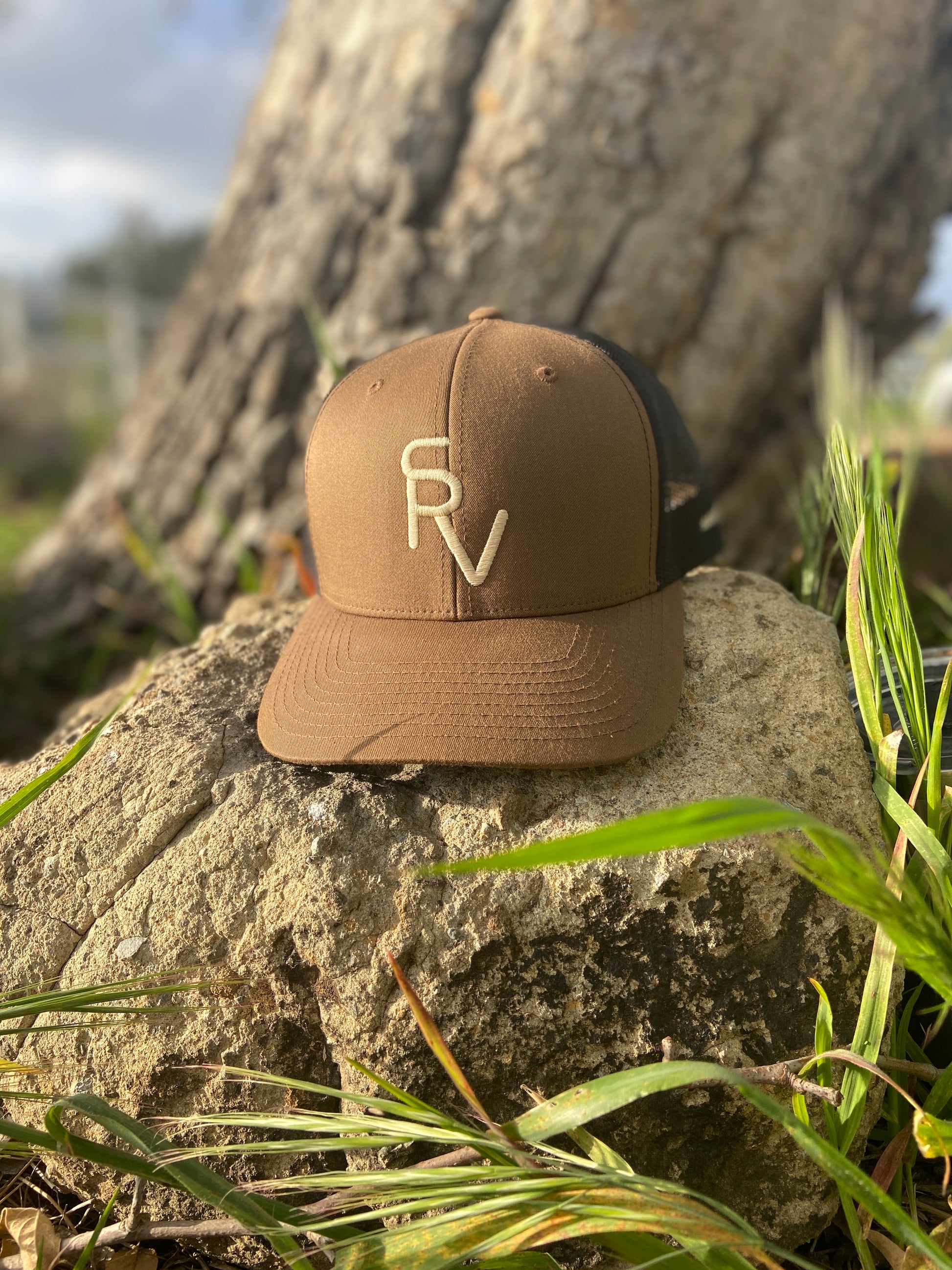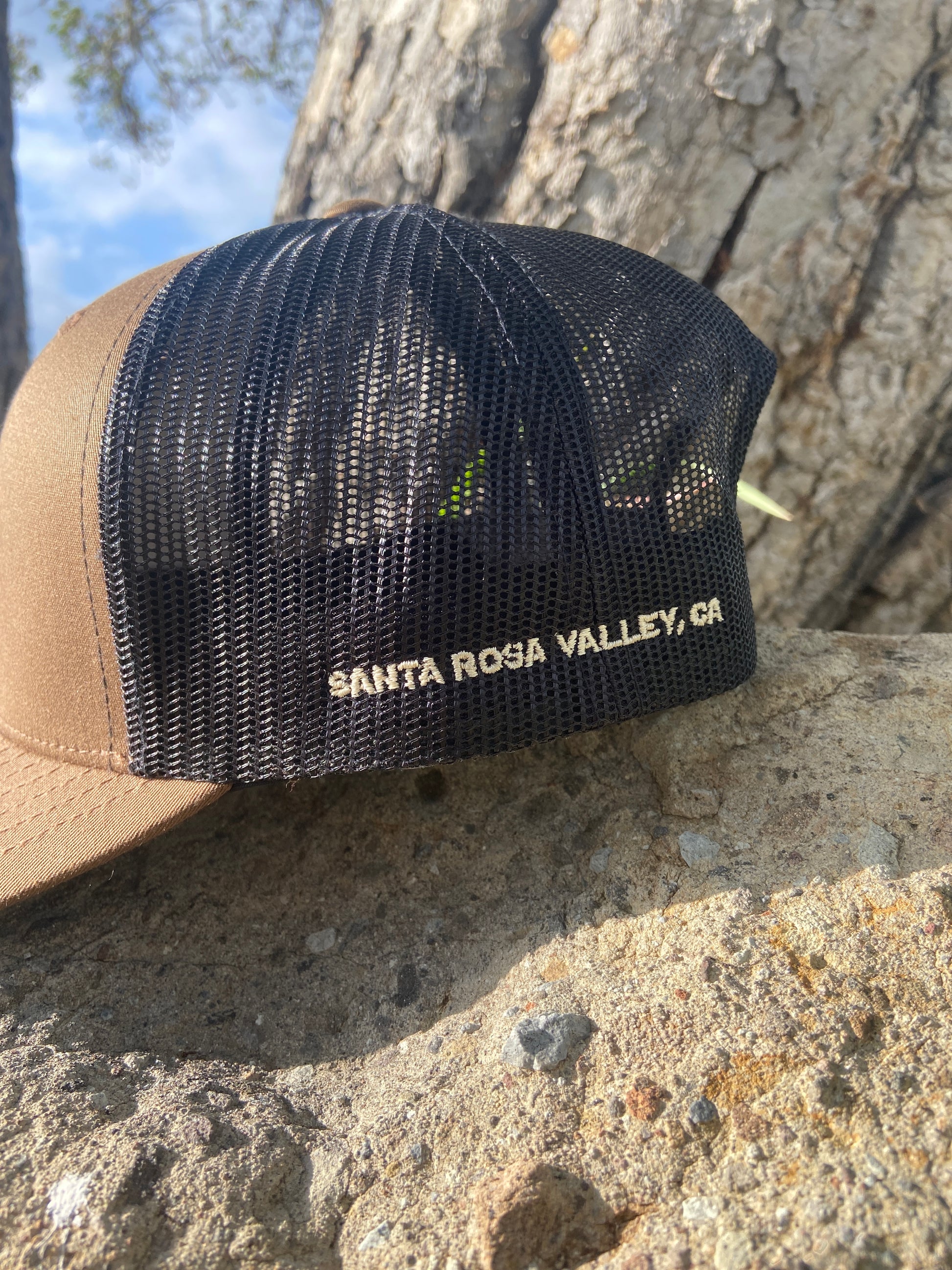 Santa Rosa Valley brand embroidered on a Brown/Black Yuupong Retro Trucker Snapback Cap
