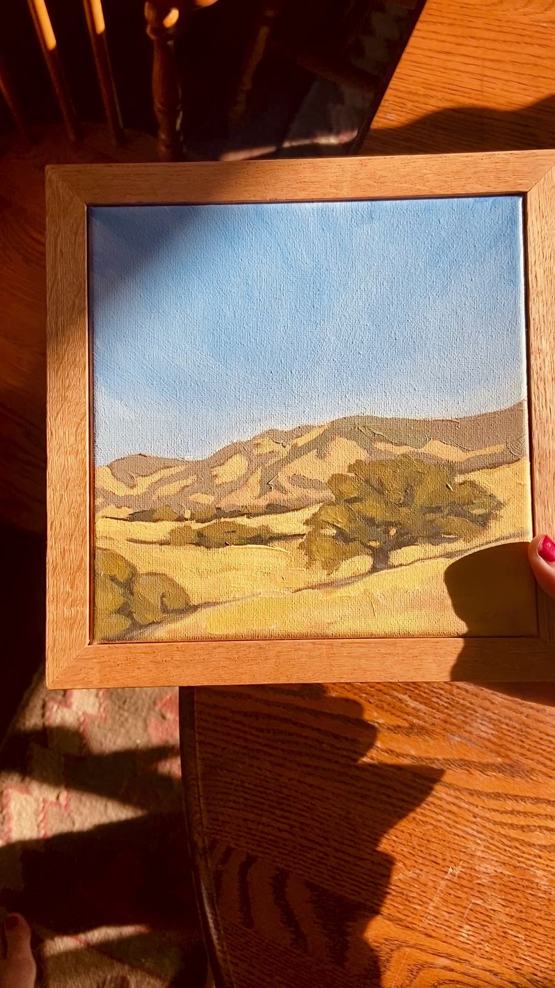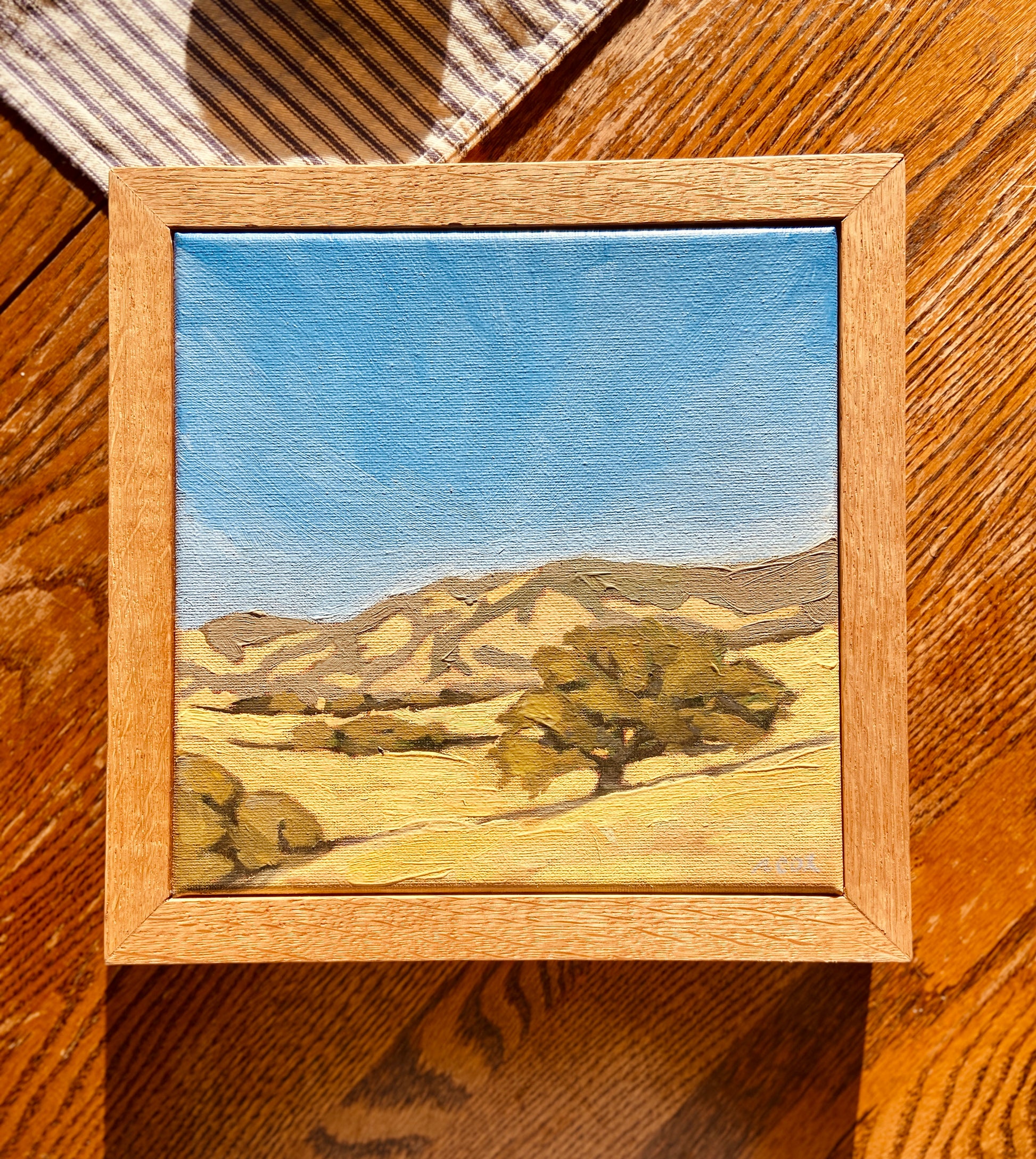 Original oil landscape painting with handmade oak frame
