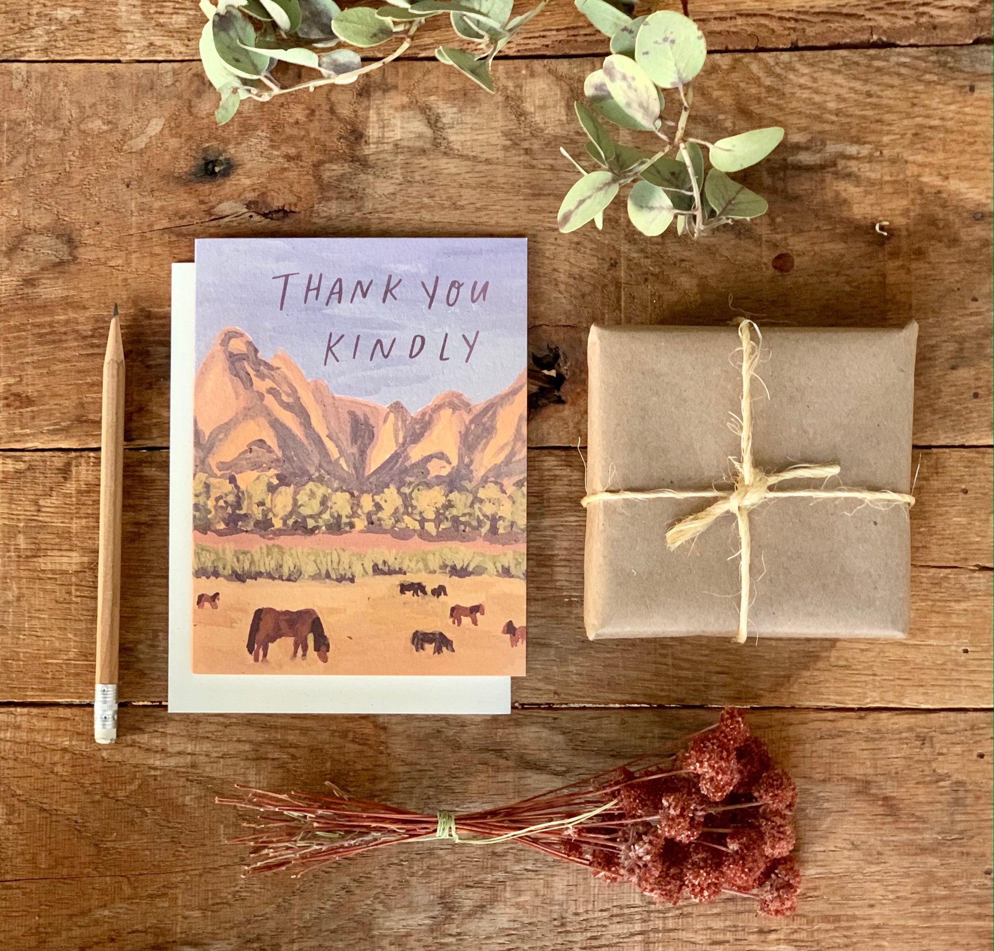 Nothing says thank you like a peaceful western mountain landscape scene and a few horses out in the pasture.
