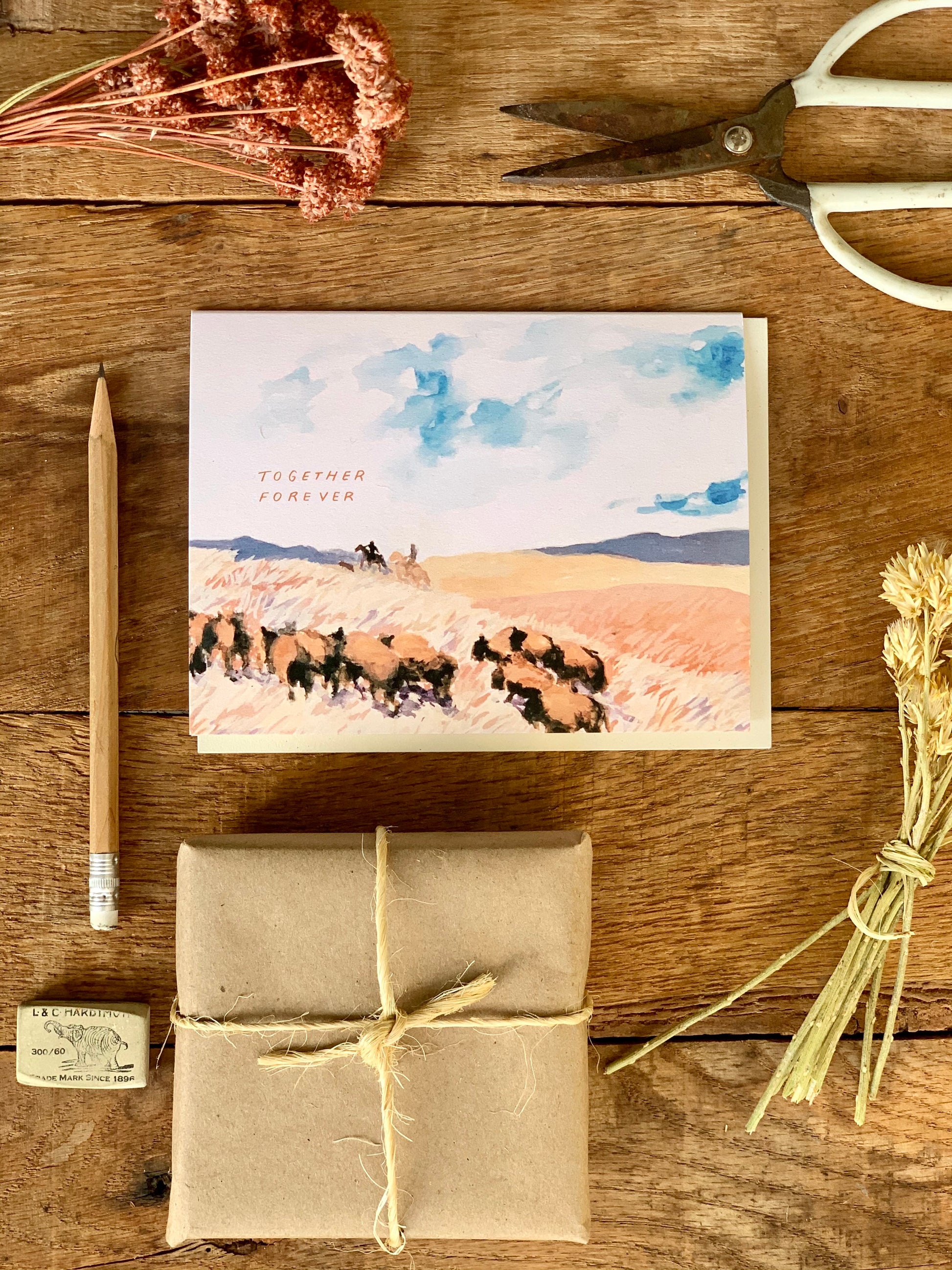 Inspired by a few of the elements that define the west - bison herds and big skies, this is a beautiful card suitable for an anniversary, engagement, wedding, Valentines or to say I love you to your partner.