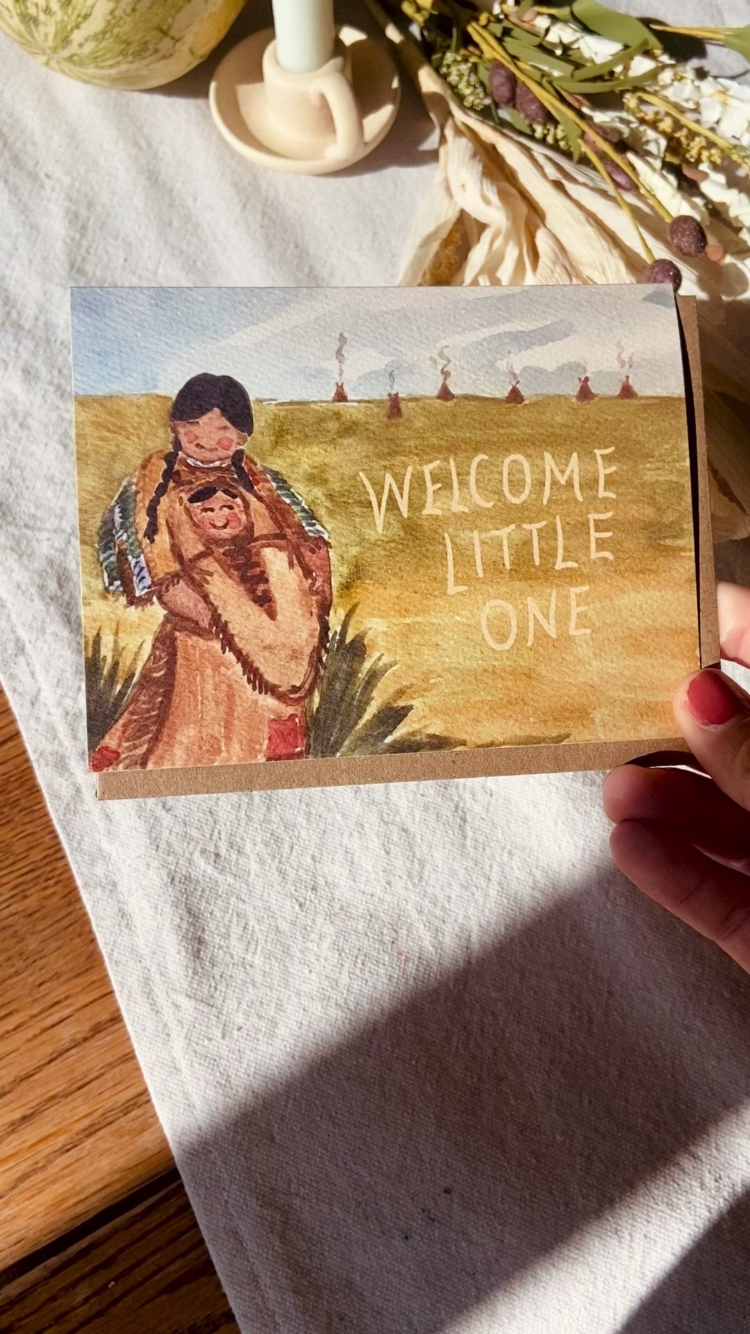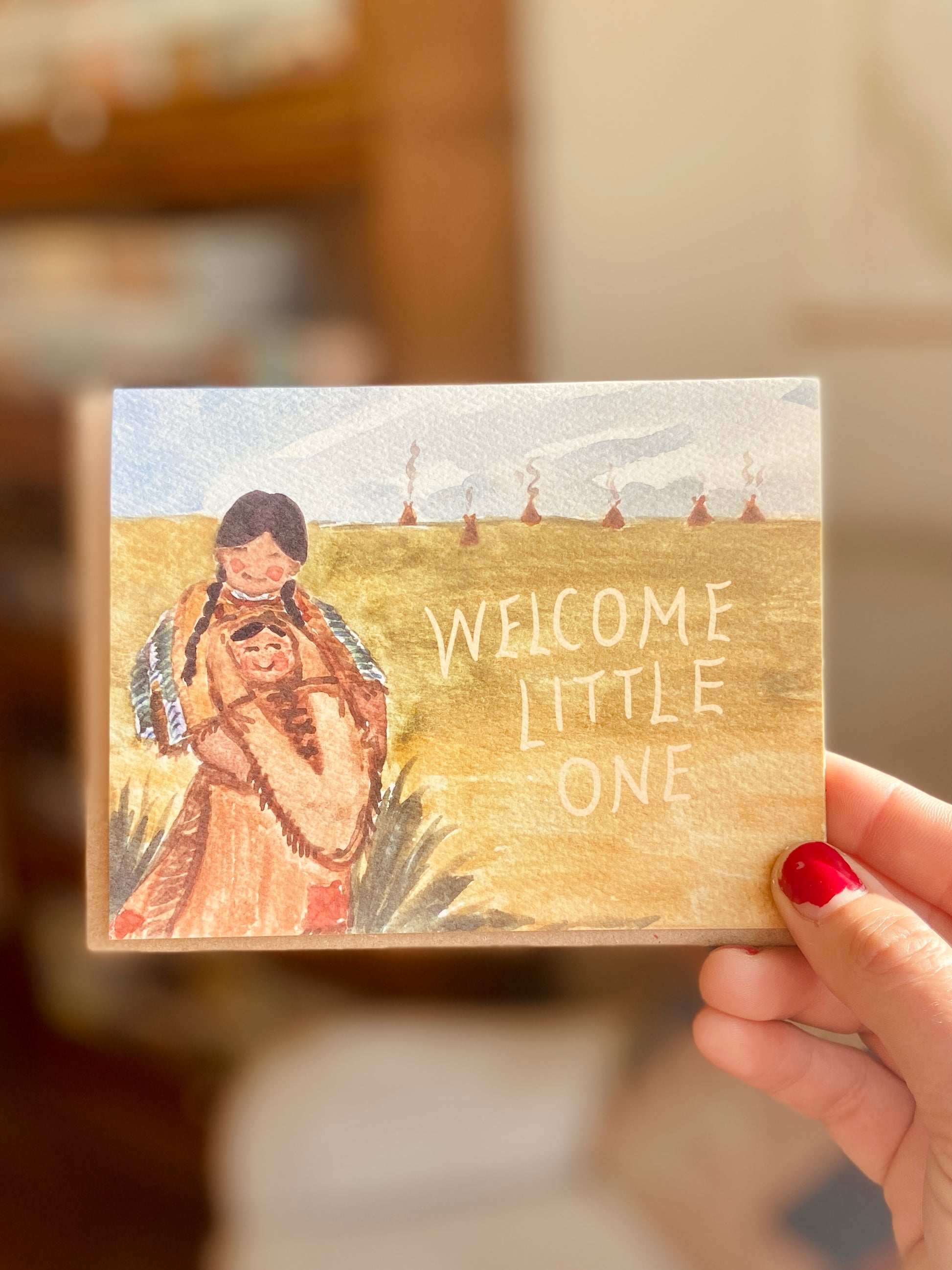 Honoring the beauty and heritage of Native Americans, this card is a unique and heartwarming choice for an expecting mother or mom who has a flair for the western or an old soul.